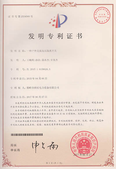 鐵嶺市世紀電力設備有限公司是集科研開發(fā)、生產制造、用戶服務于一體的國家高新技術企業(yè),始建于1999年,位于鐵嶺經濟開發(fā)區,占地面積5萬余平方米,建筑面積2萬余平方米。主要從事國家電網配套戶外高低壓隔離開關、電力電纜、變壓器成套裝置、高低壓開關柜、箱式變電站、絕緣子等產品的研發(fā)、生產和銷售。公司現有國家發(fā)明專利6項、實用新型專利9項,公司通過了ISO9001國際質量管理體系認證、ISO14001環(huán)境管理體系認證和ISO 45001職業(yè)健康安全體系認證。